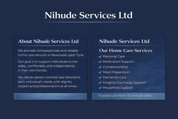Information on this page is displayed without responsibility for its accuracy on the part of homecare.co.uk. Please contact Nihude Services Ltd to verify any information. View our terms and conditions. Nihude Services Ltd has an Enhanced Service - more info.